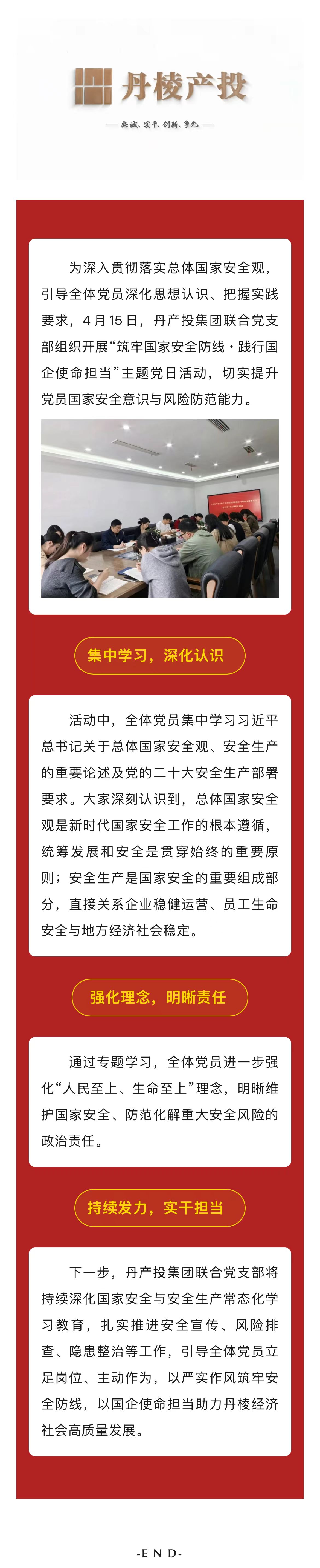 筑牢國(guó)家安全防線 踐行國(guó)企使命擔(dān)當(dāng)——丹產(chǎn)投集團(tuán)聯(lián)合黨支部4月主題黨日活動(dòng)